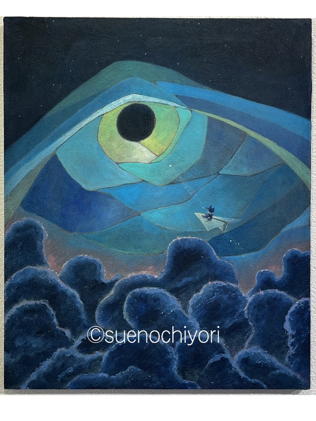 タイトル:夜はこれから サイズ:F3号 220×273(mm) 制作年:2023.6 使用画材:アクリル絵具・色鉛筆・モデリングペースト