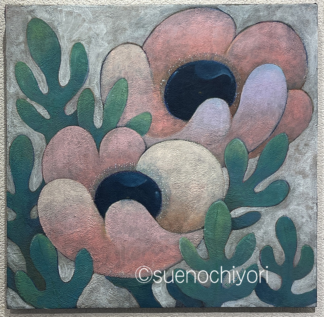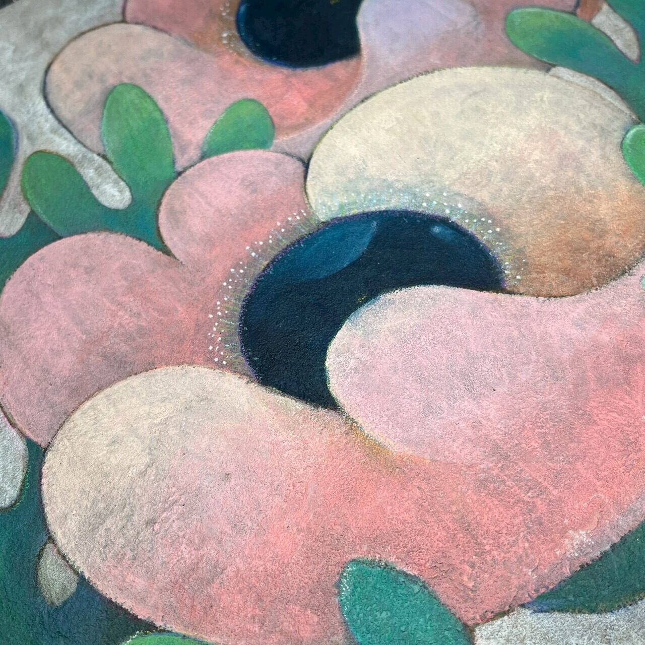 使用画材:アクリル絵具・色鉛筆・パミス・胡粉ジェッソ・木製パネル