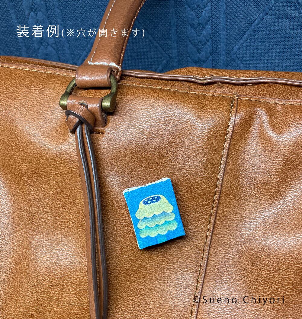 裏面がピンバッジになっており、かばんや服、ストールなどに着けることができます。